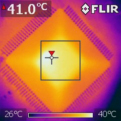 Here’s a thermal shot (with the unmodified camera) of an arduino board that had been running for a long time: