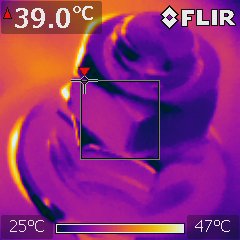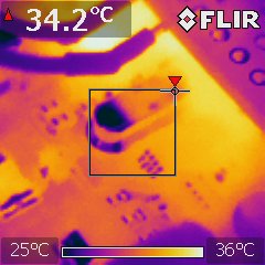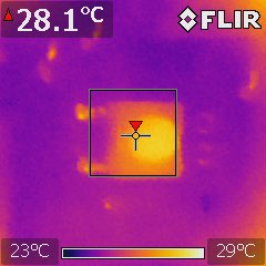 (By the way, the above images look cool, but you should never trust the display of a thermal imager pointed at metal. Metal has a terrible emissivity, so you’ll end up measuring the reflected temperature of the wall instead. If you really need to measure the temp of something metal, put a small piece of masking tape on it first and then measure the temperature of the tape.)