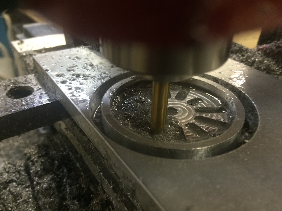 And running under full CNC control. The part is a simple handwheel to add to the stepper motor shafts: