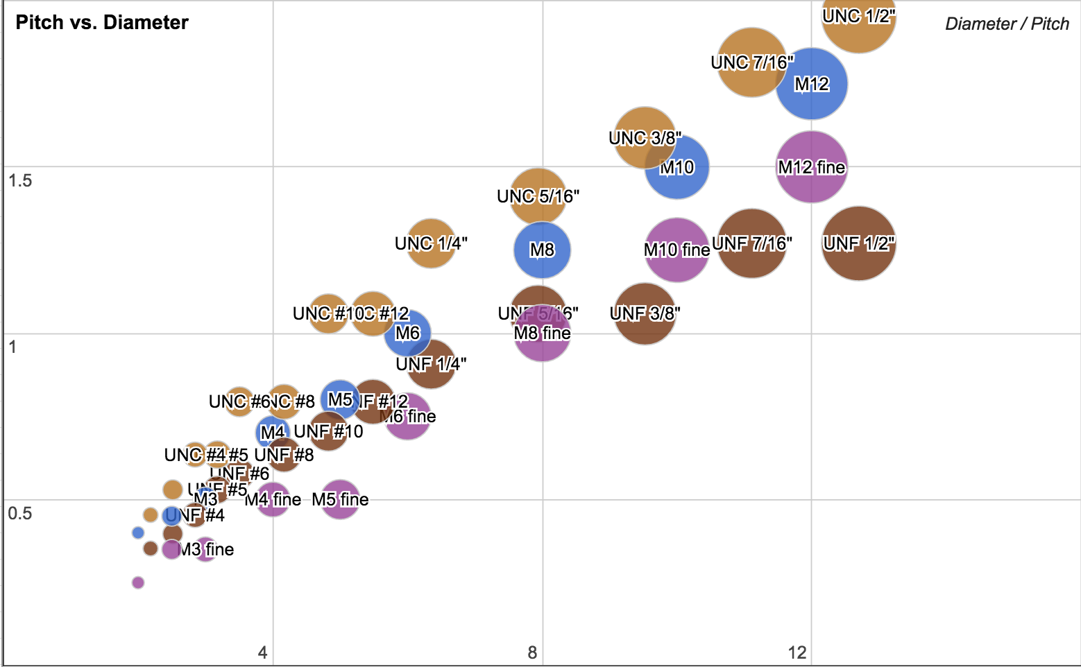 Judging by the graph, I’m going to guess the pair I had issues with previously were M10 and 3/8″ coarse. Nifty!